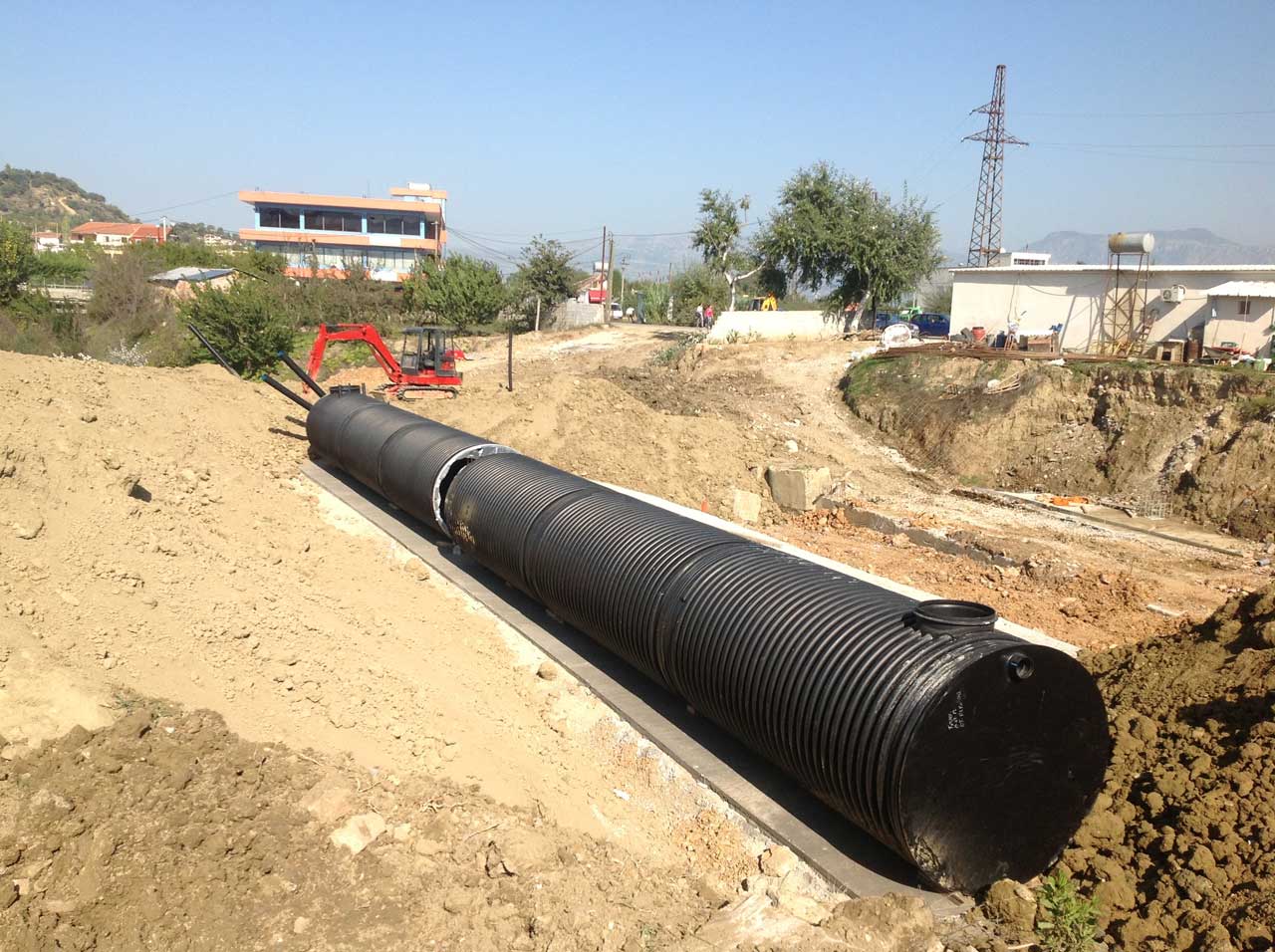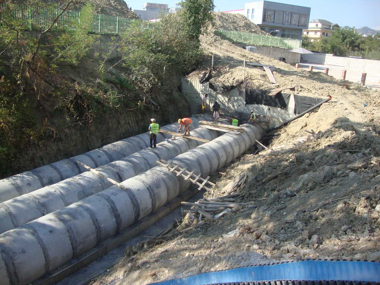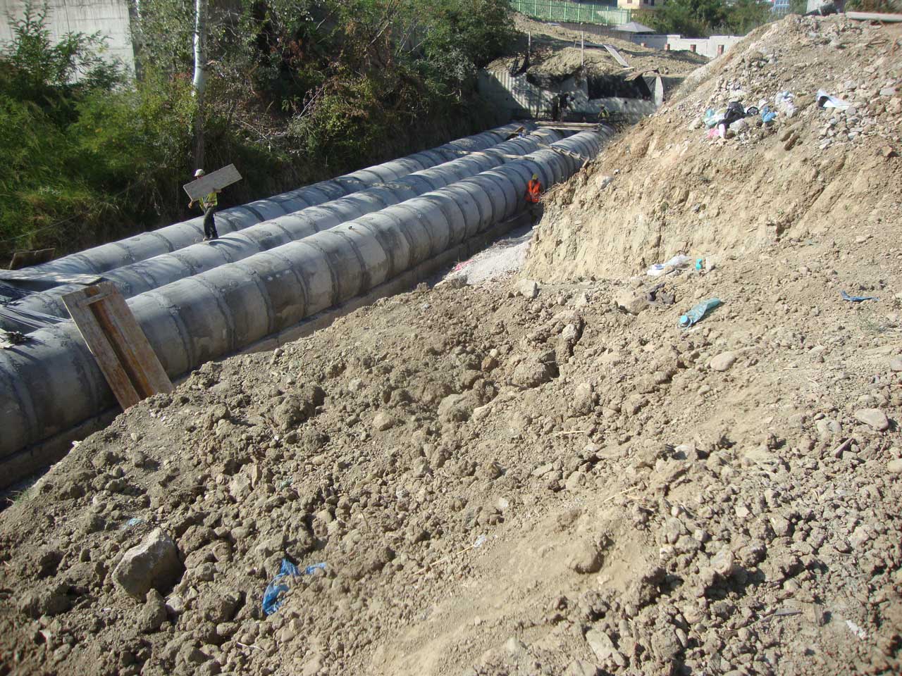 – Hydro-technical works, installation of concrete pipes with a diameter of 1 m, reinforcement of the canal