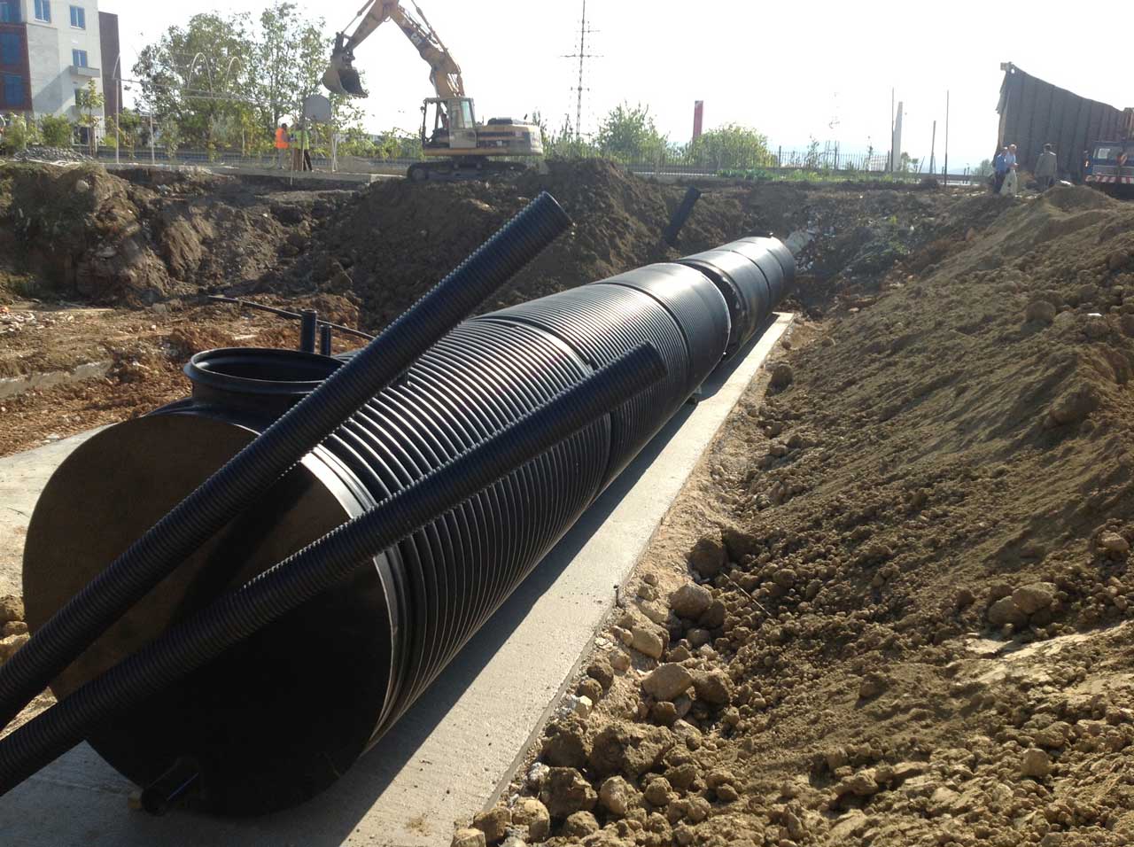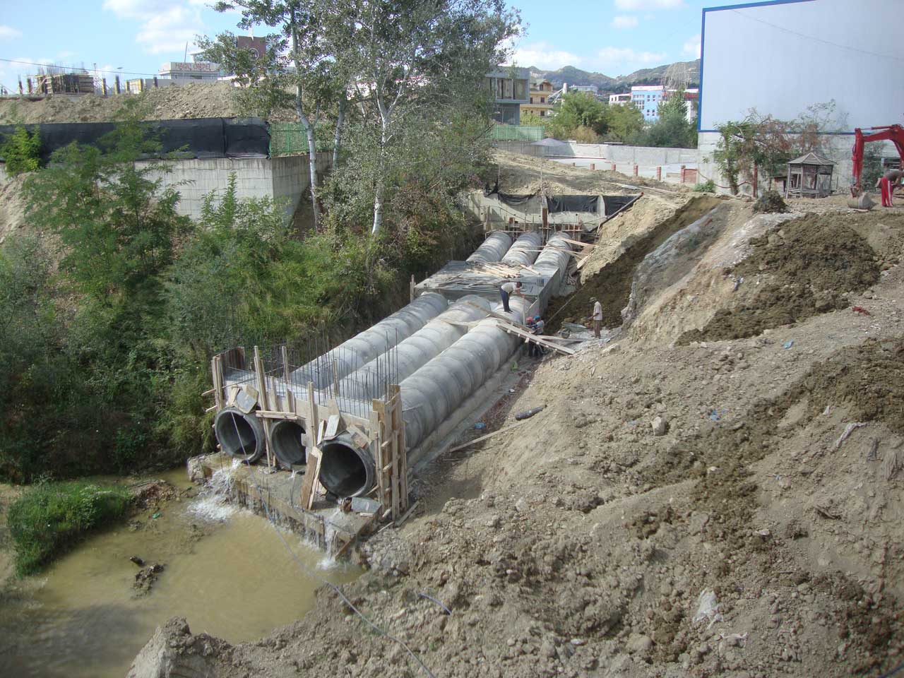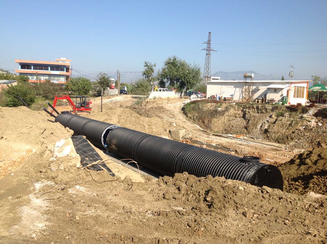 – Hydro-technical works, installation of concrete pipes with a diameter of 1 m, reinforcement of the canal
