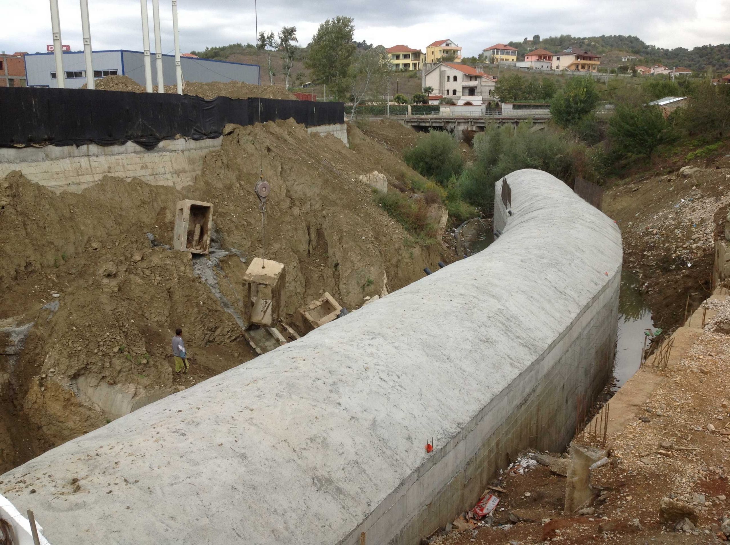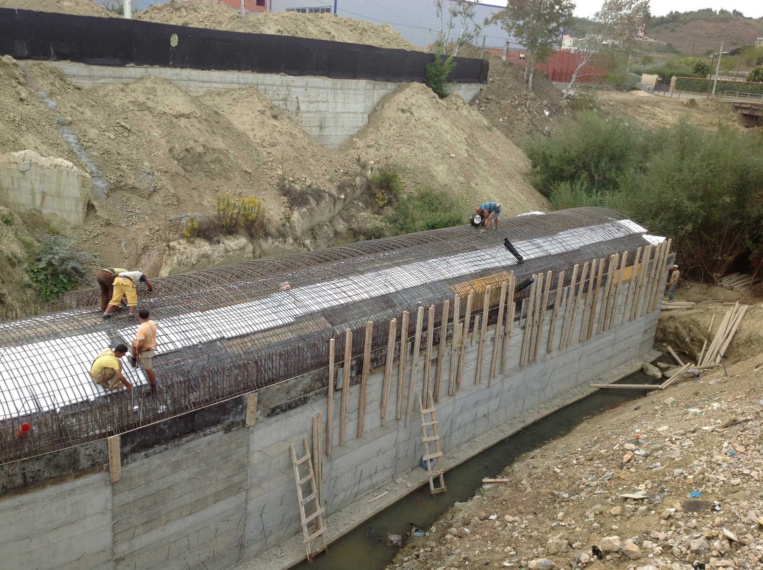 concrete with 5×3 ml section, filling and control system for covering two rivers;